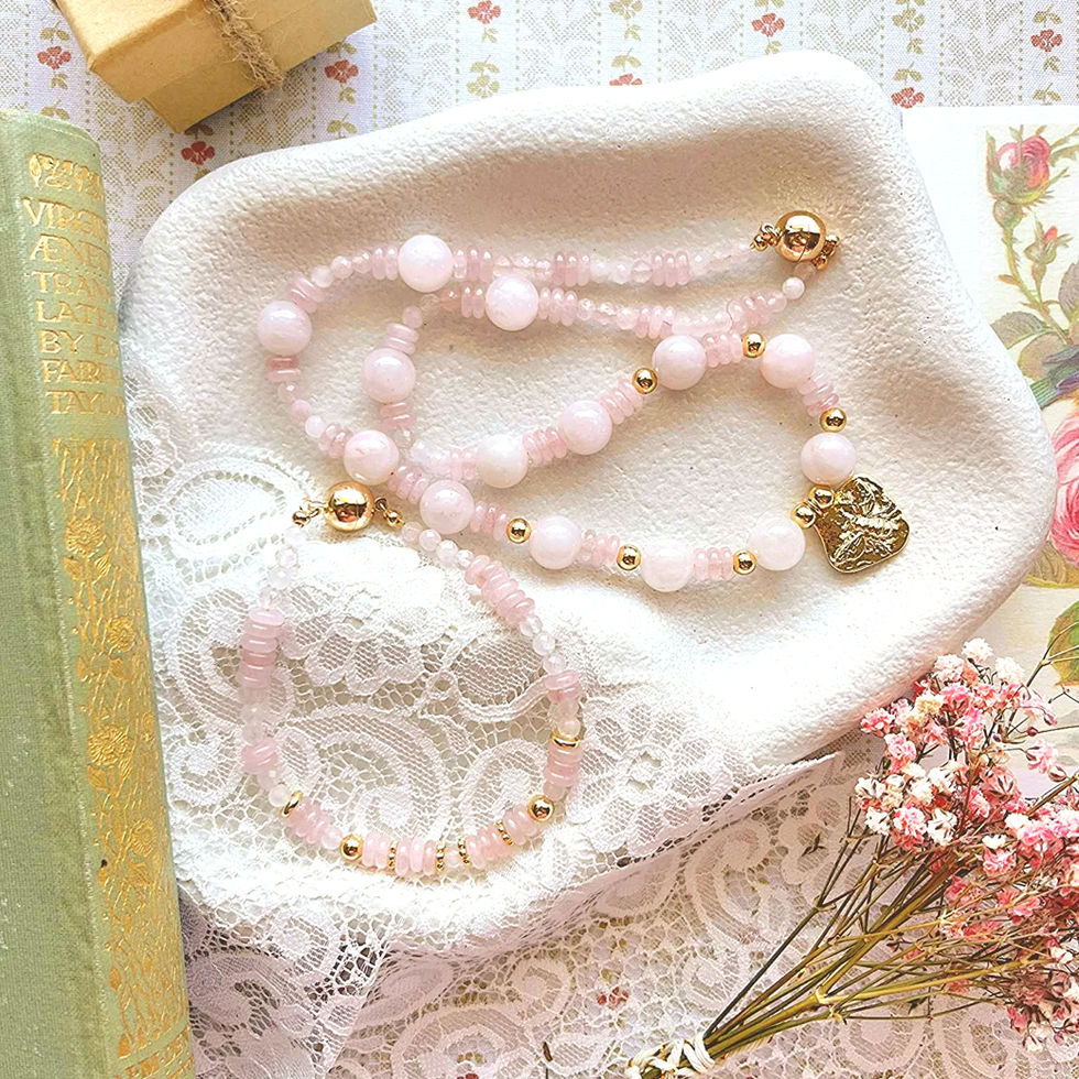 Featuring 14k Gold Plated finishes and genuine rose quartz beads in both flat and faceted styles, this piece radiates elegance and charm. The magnetic clasp allows for effortless wear and quick interchangeability (also perfect for those with arthritic fingers!).