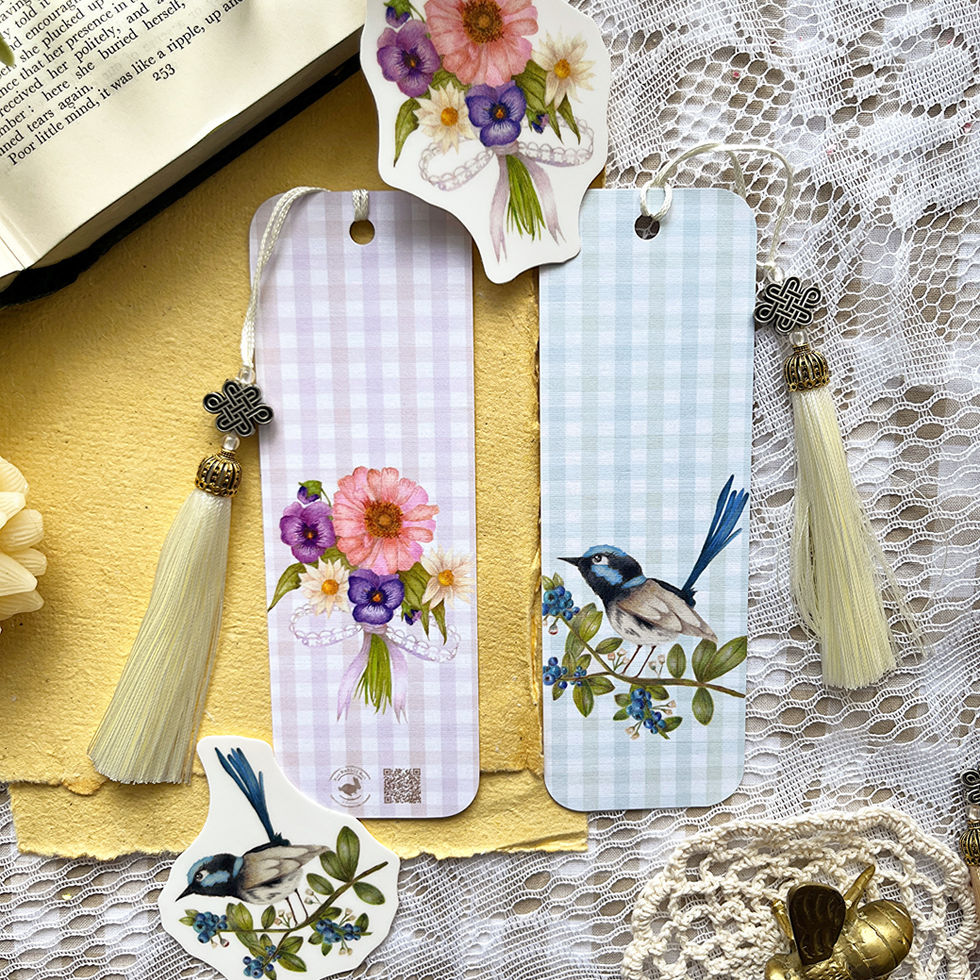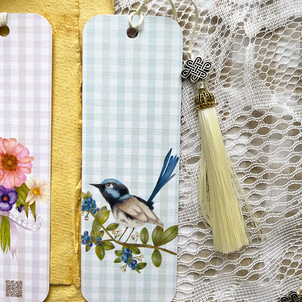 Floral Bouquet and Fairy Wren Gingham Cute Double Sided Bookmark