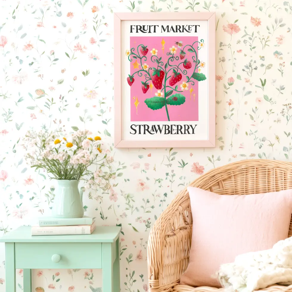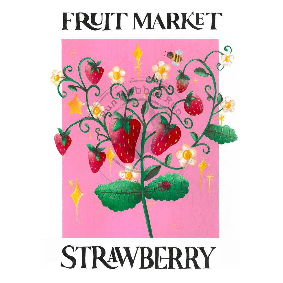 Sticky sweet and delicious to eat - immerse yourself in sunshine and summer vibes with our Fruit Market Strawberry Fine Art Giclée Print, a celebration of fresh fruits and vibrant market days.